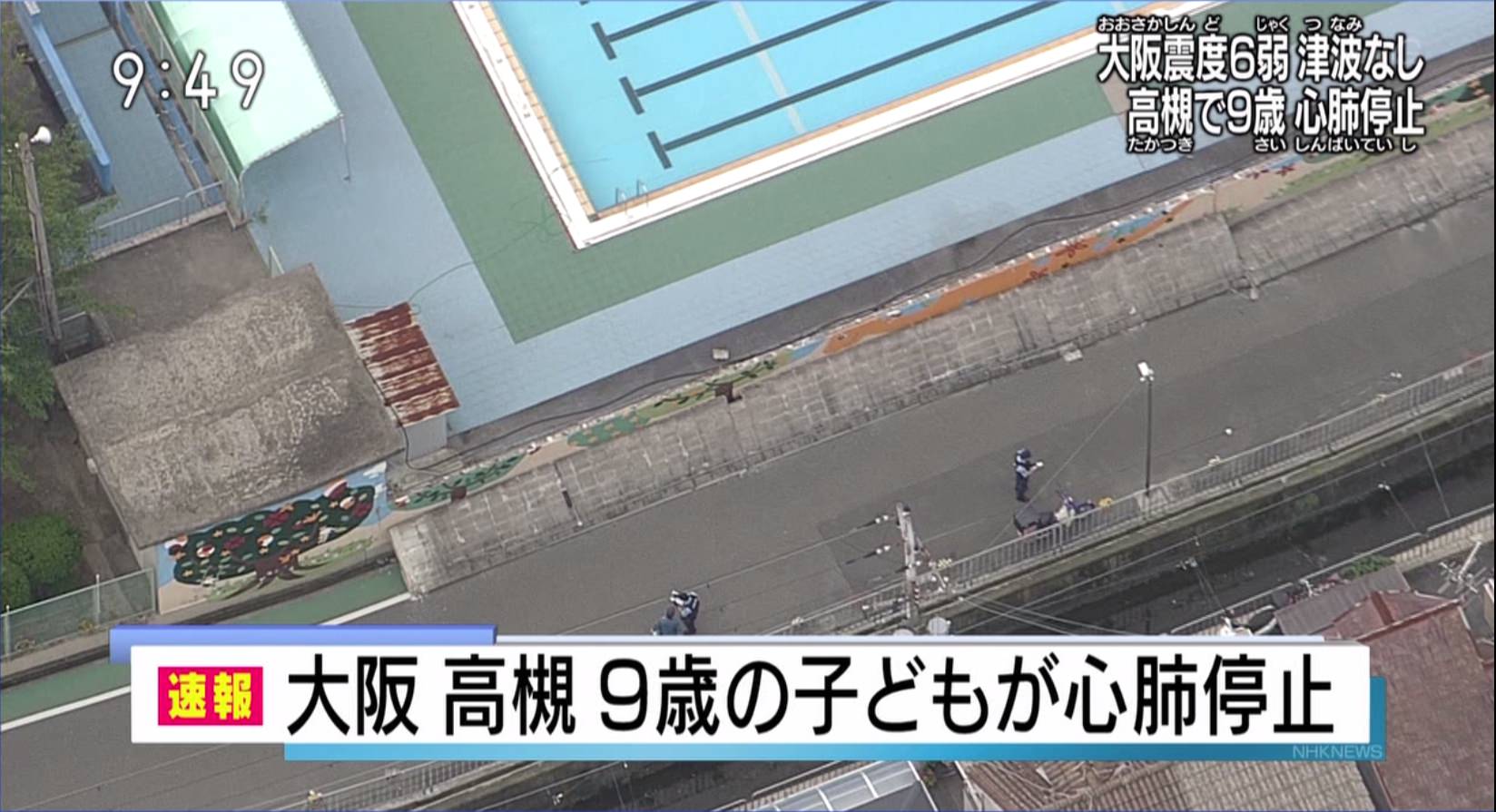 大阪府によりますと、女の子は高槻市立寿栄小学校のプールの壁に挟まれたということです。また、震度5強を観測した大阪・東淀川区上新庄で外壁の下敷きになった80歳の男性の死亡が確認されたということです。