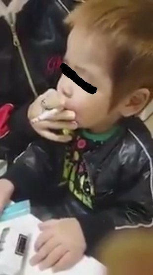 で子供にタバコ吸わせてうp
