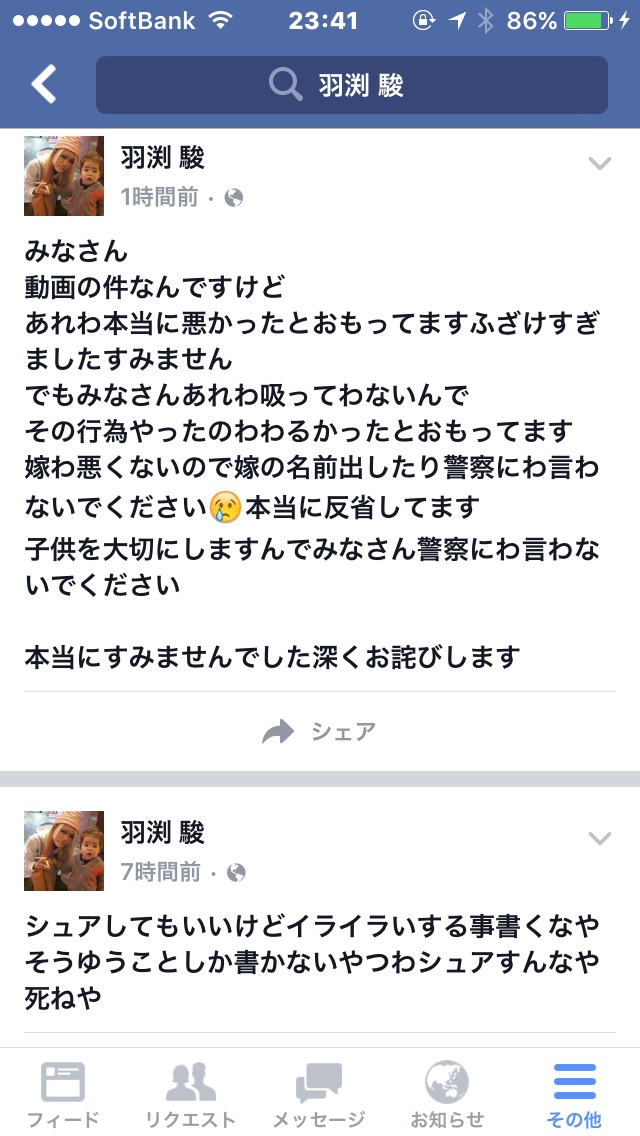 あれわ本当に悪かったとおもってますふざけすぎましたすみません