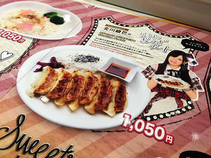 確かに餃子とライスだけで1000円以上するのは高い。たとえAKB48関連の料理だとしても高額といえる。ちなみにこの餃子プレートは、メンバーの北川綾巴(きたがわ りょうは)が考案した料理で、北川家の味をイメージしたらしい。