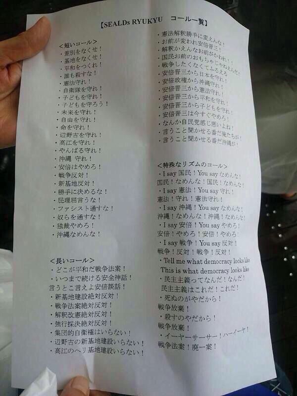 SEALDsのコール一覧wwwwwwwwwww