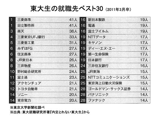 人気企業総ざらいって感じだが東大生はもっといるよな?