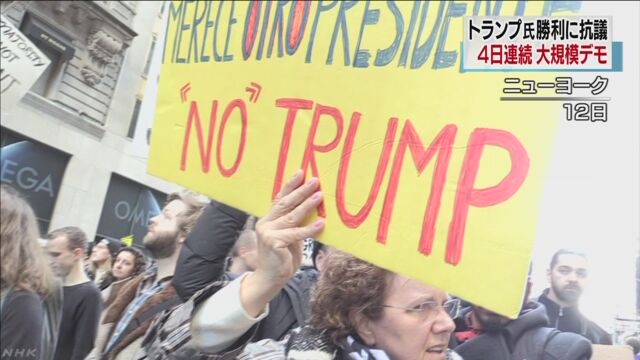 アメリカではトランプ次期大統領が選挙で勝利して以来、4日連続で各地で大規模な抗議デモが続いています。