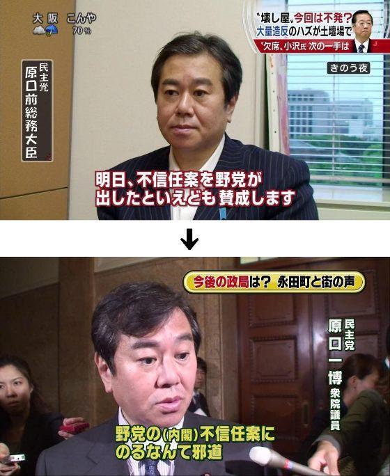 一日で主張をひっくり返した民主党・原口を笑えないな