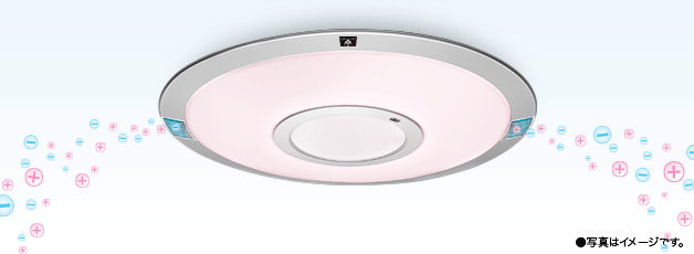 シャープ独自の除菌・脱臭イオン技術「プラズマクラスターイオン」を放出するLEDシーリングライト。発生ユニットは2基搭載されており、天井からプラズマクラスターイオンを送る。消灯時でも、プラズマクラスターの単独運転ができる。