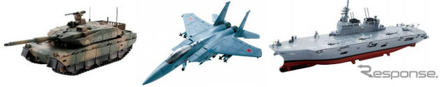 同シリーズでは、自衛隊の歴史を彩る名装備や、現在も日本を守り続ける最新装備を厳選してモデル化。怪獣映画に登場した懐かしの「61式戦車」や「F-104J」、人気のアクロバットチーム「ブルーインパルス」で使用された「T-4」、今までほとんどモデル化されていなかった「護衛艦あきづき」、「PAC3(ペトリオットミサイル)」などをラインナップ。