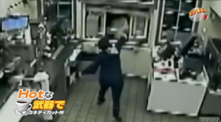 アメリカ東部のコネティカット州のドーナツ店で、強盗しようとした男を、女性従業員が思わぬ武器を使って撃退した。ドライブスルーに現れた1人の男は、身を乗り出し、店内に侵入しようとした。その時、従業員は男の顔に、できたての熱いコーヒーを浴びせかけた。意外な攻撃に男がひるんだところ、従業員は、ポットのコーヒーを使って追い打ちをかけた。結局、男は車に乗って退散した。