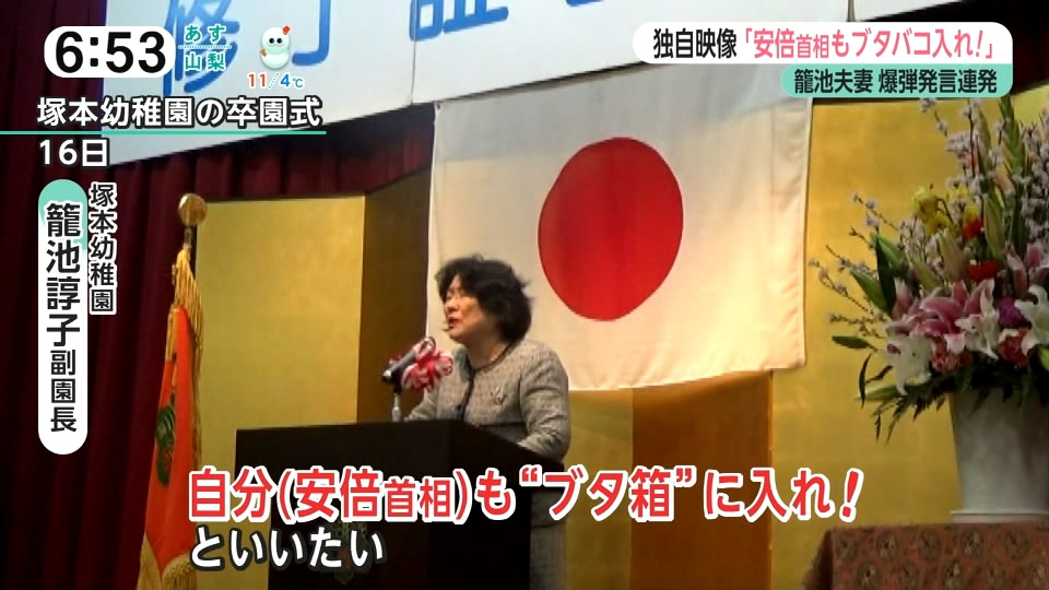 今日フジテレビの報道で塚本幼稚園の卒園式やってたんだけど