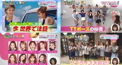 この番組は「日本デビュー目前の韓国9人組ガールズグループTWICEに現地女子中高生はなぜ熱狂するのか調べてみる」とし「2015年メジャーデビュー後、1年で9か国のiTunes総合アルバムチャート1位になり、20本以上のCMに出演している世界が注目するグループ」と紹介した。続けて、渋谷の真ん中に大規模な広告を掲げた様子や地元女子中高生を対象に認知度調査をした結果を紹介したが、TWICEは日本正式デビュー前にもかかわらず80%の認知度を示した。TWICEが好きだと答えた女子学生は「TWICEの中に1人も可愛くないメンバーがいない」「ツウィを見て女神だと思った」と熱狂した。