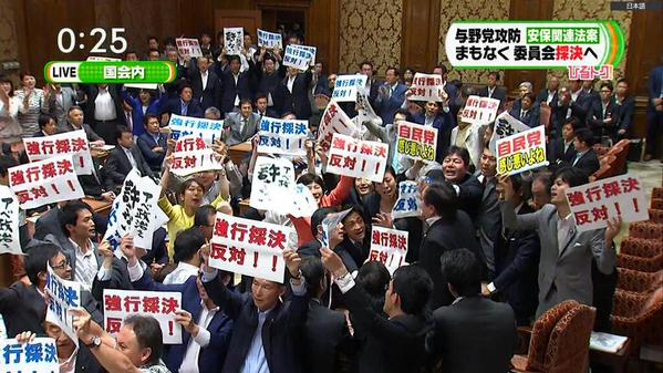プラカードを掲げて採決に抗議するなどの民進党の手法を念頭に置いた発言だ。