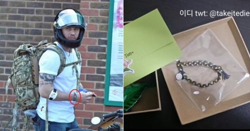 30日、あるツイッタリアンAさんは自身がハーディに送った慰安婦ブレスレットを彼が手首にしていることを見つけたとし、写真数枚をツイッターに掲載した。