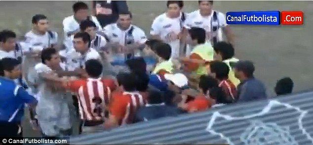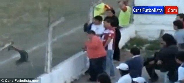 Read more: http://www.dailymail.co.uk/news/article-2339421/Argentine-footballer-sparks-brawl-picks-dog-invaded-pitch-tries-throw-stand-neck.html#ixzz2VvLeCCuH