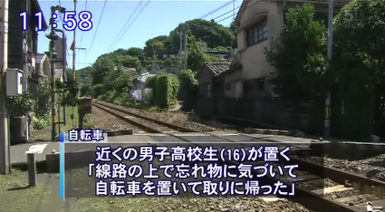 警察によると、自転車は近くに住む男子高校生のもので、「忘れ物に気付き、踏切内に自転車を置いたまま自宅に取りに戻った。」と話しているという。