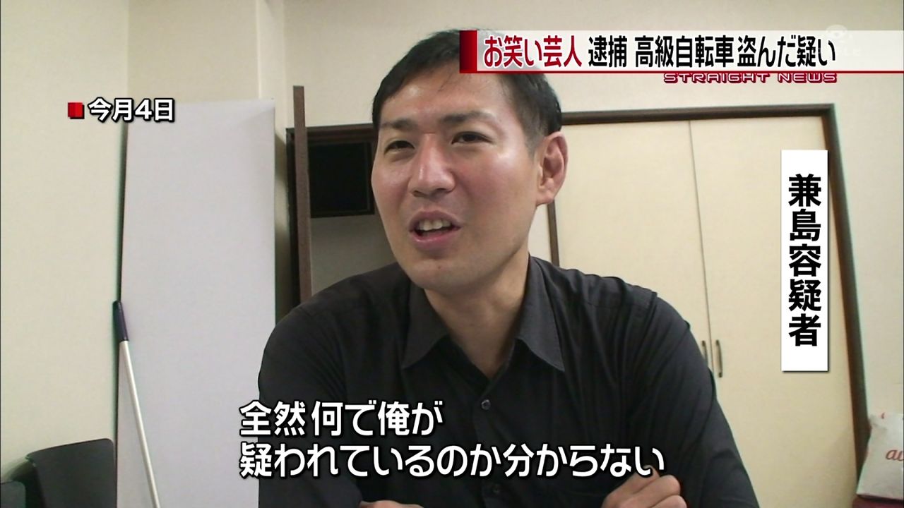兼島容疑者はユニークなダンス芸で注目を集めたピン芸人で、2007年にデビュー。所属事務所のホームページに掲載されているプロフィルによると、日本テレビ「エンタの天使」「エンタの神様」、TBS「あらびき団」などの人気お笑い番組に出演していた。芸人仲間の間では自転車好きで知られ、兼島容疑者のものとみられるブログには「自転車最高」などのタイトルで関連のコメントが度々書き込まれていた。