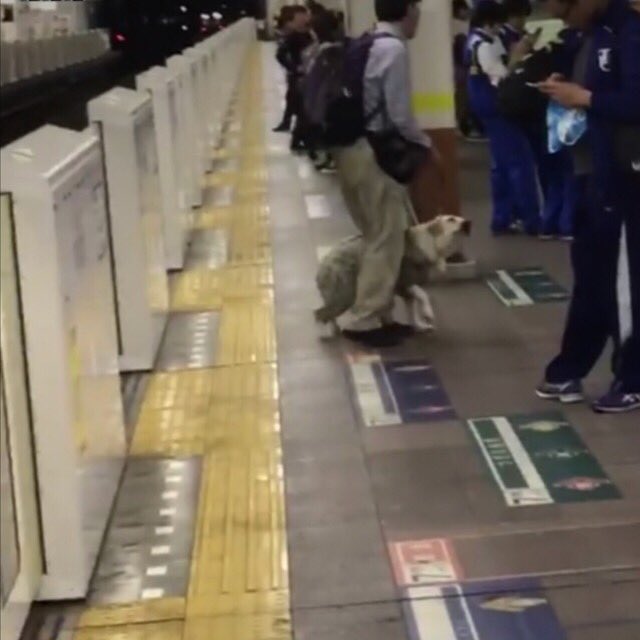 埼玉県の和光駅のホームで盲導犬にパートナーが足で蹴りをいれている動画です 時間が経っているので