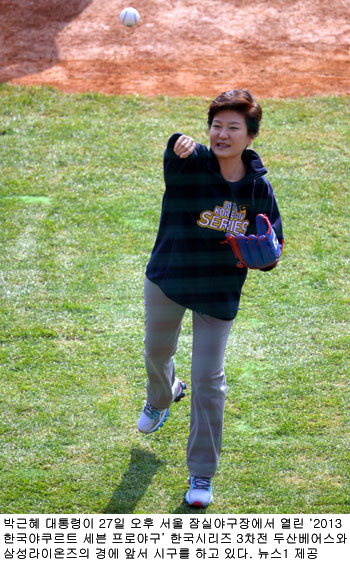 複数の韓国メディアによると、朴大統領はプロ野球韓国シリーズ第3戦、斗山(トゥサン)対サムスンの始球式に“サプライズ”で登場した。