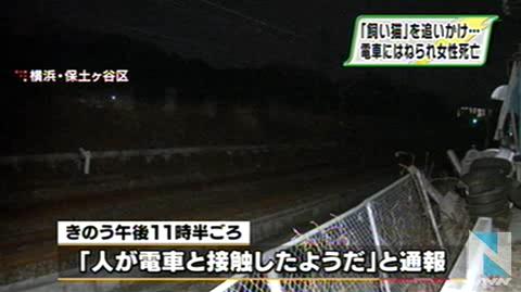 6日夜、横浜市・保土ヶ谷区のJR横須賀線の線路内で、25歳の女性が電車にはねられ死亡しました。女性は逃げた飼い猫を追いかけていたとみられます。
