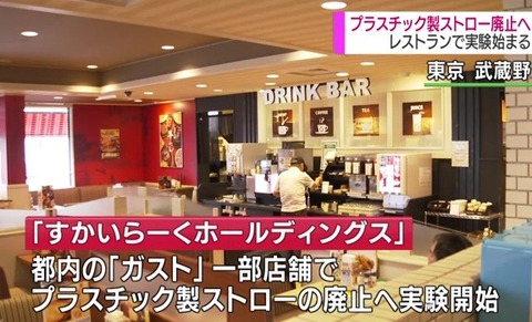 ファミリーレストラン最大手の「すかいらーくホールディングス」は東京都内にある「ガスト」の一部の店でプラスチック製ストローの廃止に向けた実験に乗り出しました。