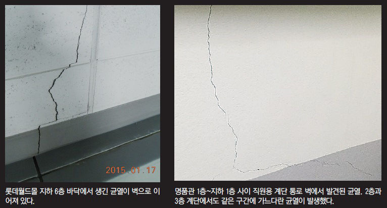 韓国ではこの第2ロッテタワーのころを「123階建てのセウォル号」とまで呼ばれている。店舗には30箇所の亀裂が発覚している。ロッテ側はその亀裂を白いペンキで塗るだけという作業で終えた。これでは全くの補強にはなっておらず、むしろ亀裂が目立つだけ。