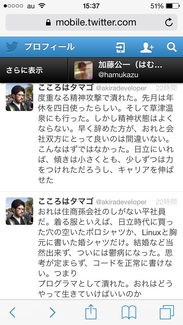 おれの退職エントリ、日立内ではまだ影響力がある。漫然と辞めるのではなく、影響を与えて辞める。おれの後、確実に若手が辞めてる。