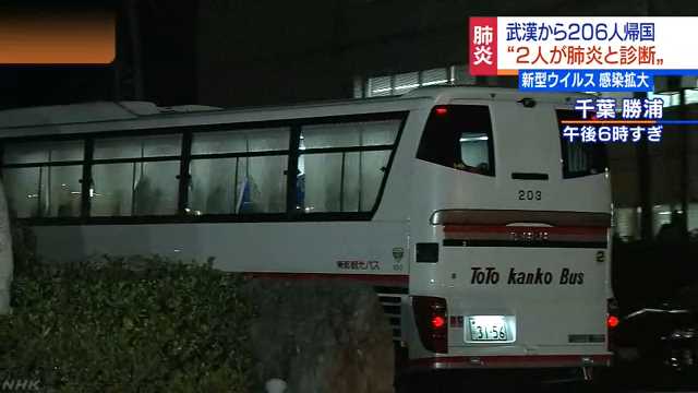 新型のコロナウイルスの感染が拡大する中国の武漢からチャーター便で帰国した人のうち、症状が見られなかった人たちが、受け入れ先の千葉県勝浦市にあるホテルに到着しました。検査結果が判明するまで、経過観察が行われます。