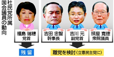 議案は「社民党を残す」と同時に「立憲へ合流して社会民主主義の継承発展を目指す選択のいずれも理解し合う」との内容。可決を受け、吉田忠智幹事長、吉川元国対委員長、照屋寛徳衆院議員は、立憲への合流手続きに入る。都道府県連も一部は合流する見通しだが、方針を決めていない組織もあり判断を急ぐ。