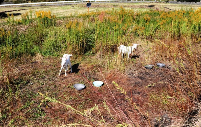 燃料を消費しないヤギによる除草は、高齢化などで増える耕作放棄地の管理や、景観保全などが目的。守さんは県西宮土木事務所職員だった2018年、尼崎市で「ヤギ除草」実験を試みた経験がある。19年4月に現職に異動後、淡路市でもやってみようと考えた。