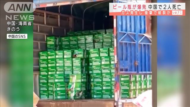 中国メディアによりますと、海南省で20日、作業員らがトラックの荷台からビール瓶のケースを降ろそうとしたところ突然、爆発が起きました。