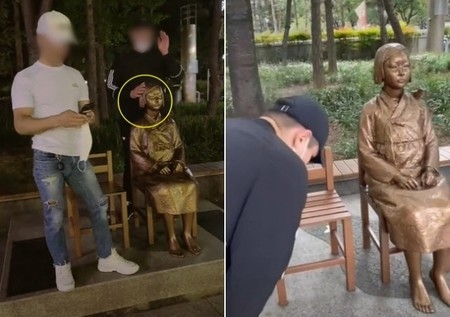 記事によると、2人は19日、韓国東南部・大邸市にある慰安婦像の頭をたたいてからかう様子の映像をSNSに掲載。コメント欄には2人の行動を批判する声が数多く寄せられていた。