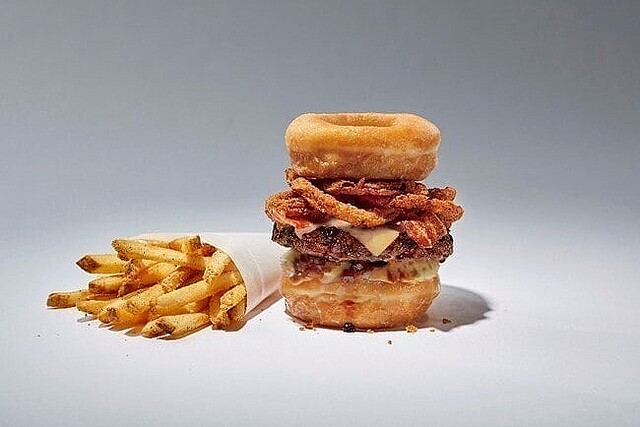 日本上陸15周年を記念して行われる今回のコラボは、フライデーズのこだわり抜いたお肉とクリスピー・クリーム・ドーナツのアメリカンな甘さを掛け合わせた「フライデーズ シグネチャー ドーナツバーガー」と「フレイミング ドーナツ チキンサンドイッチ」、ドーナツを贅沢にケーキ仕立てにした「トリプルベリーショートケーキ」の3種類です。