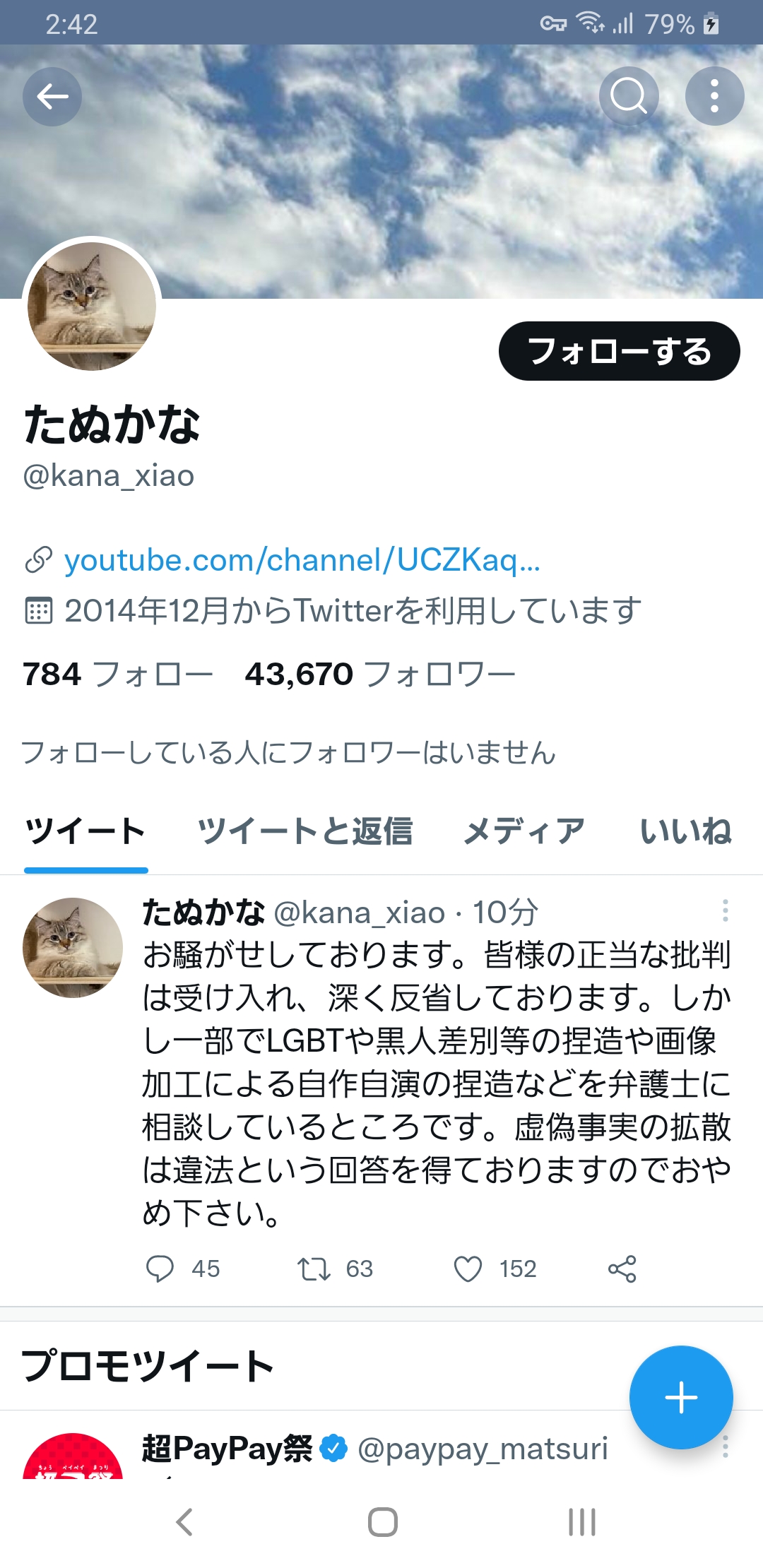 たぬかなさんは21日未明にツイッターで「お騒がせしております。皆様の正当な批判は受け入れ、深く反省しております」としつつ