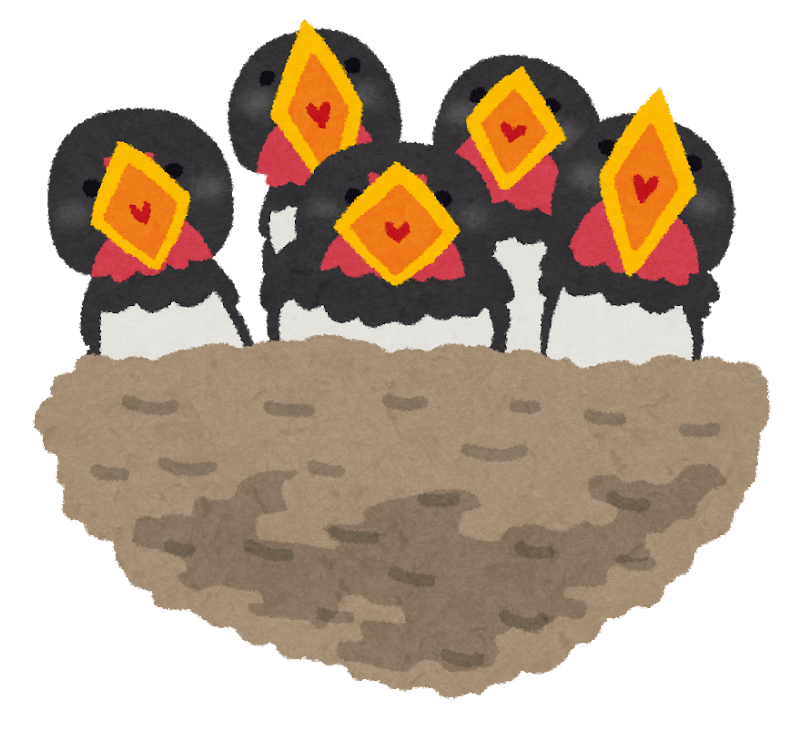 昔祖父の家の牛小屋にツバメが巣を作ってて、雛鳥が口を開けて親鳥が餌を持って帰るのを鳴きながら待ってたな。