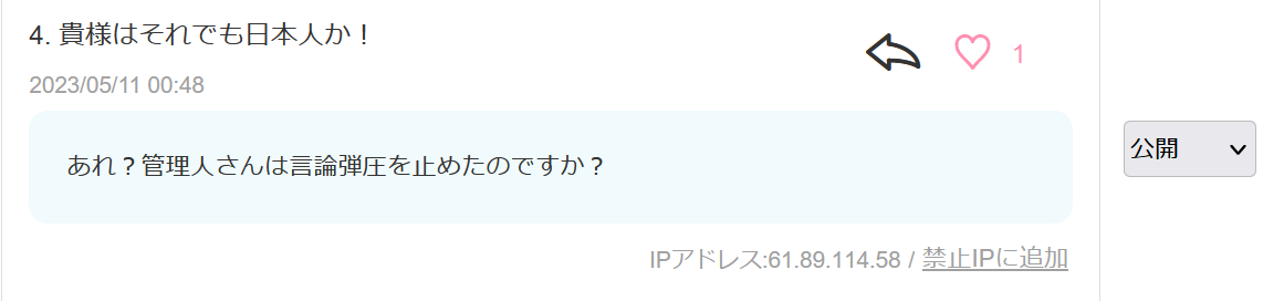 あれ?管理人さんは言論弾圧を止めたのですか?