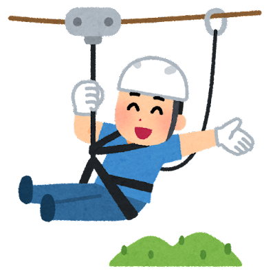 ジップラインは、張られたワイヤーを滑車を使って滑り降りるアクティビティで、女性はハーネスという安全装具の他、ヘルメットを着用していました。