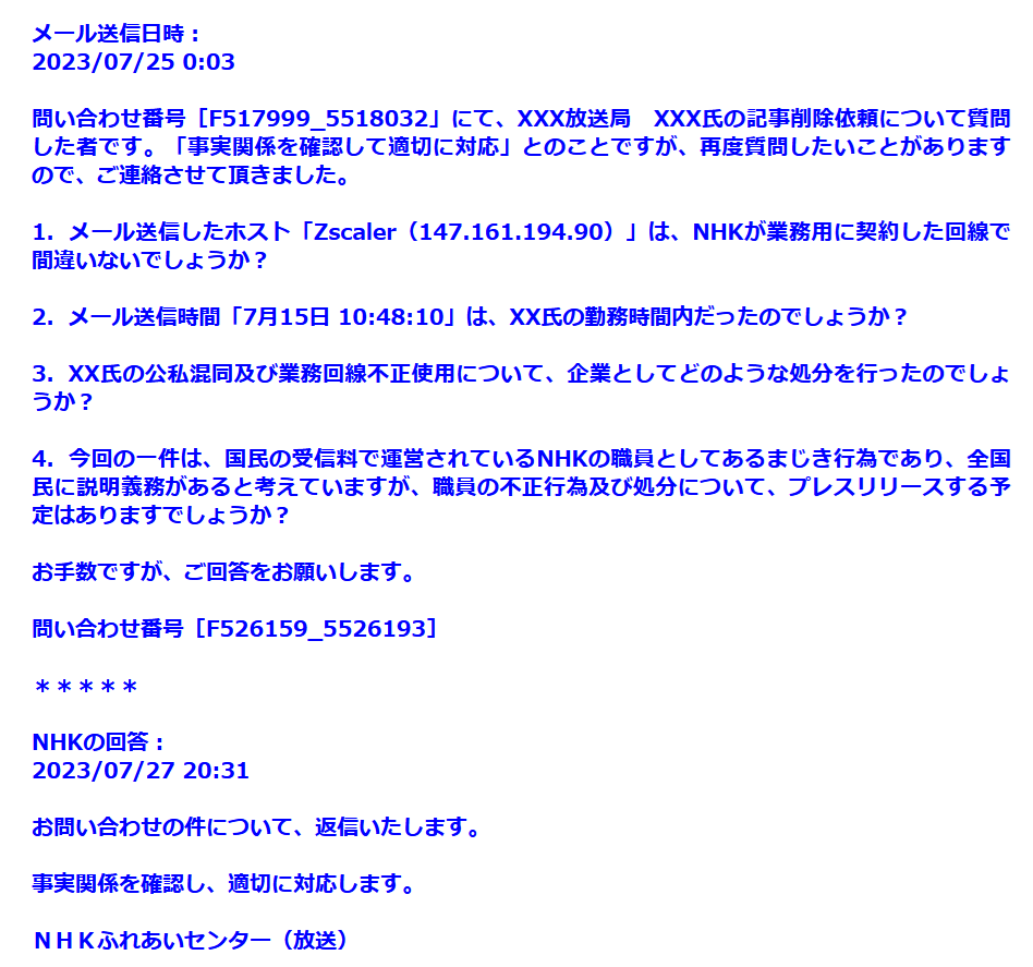 【独自】NHK職員による業務回線不正使用疑惑、NHKに問い合わせるもテンプレ回答で説明拒否wwwww