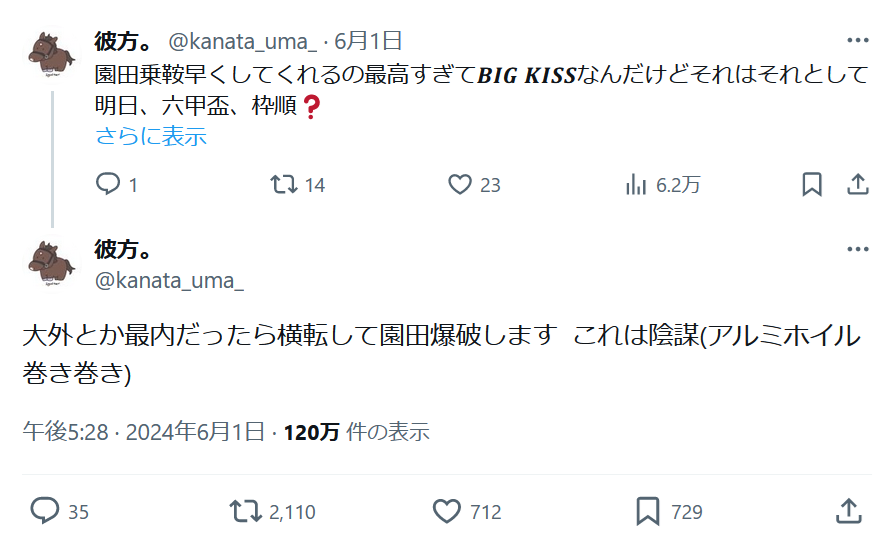 — 彼方。 (@kanata_uma_) June 5, 2024
