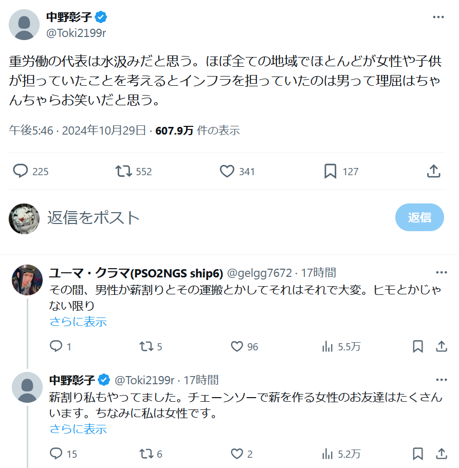 そして男は水くみより大変な力仕事や、命の危険のある作業をやってただけだ。 https://t.co/lqi4612Wu0