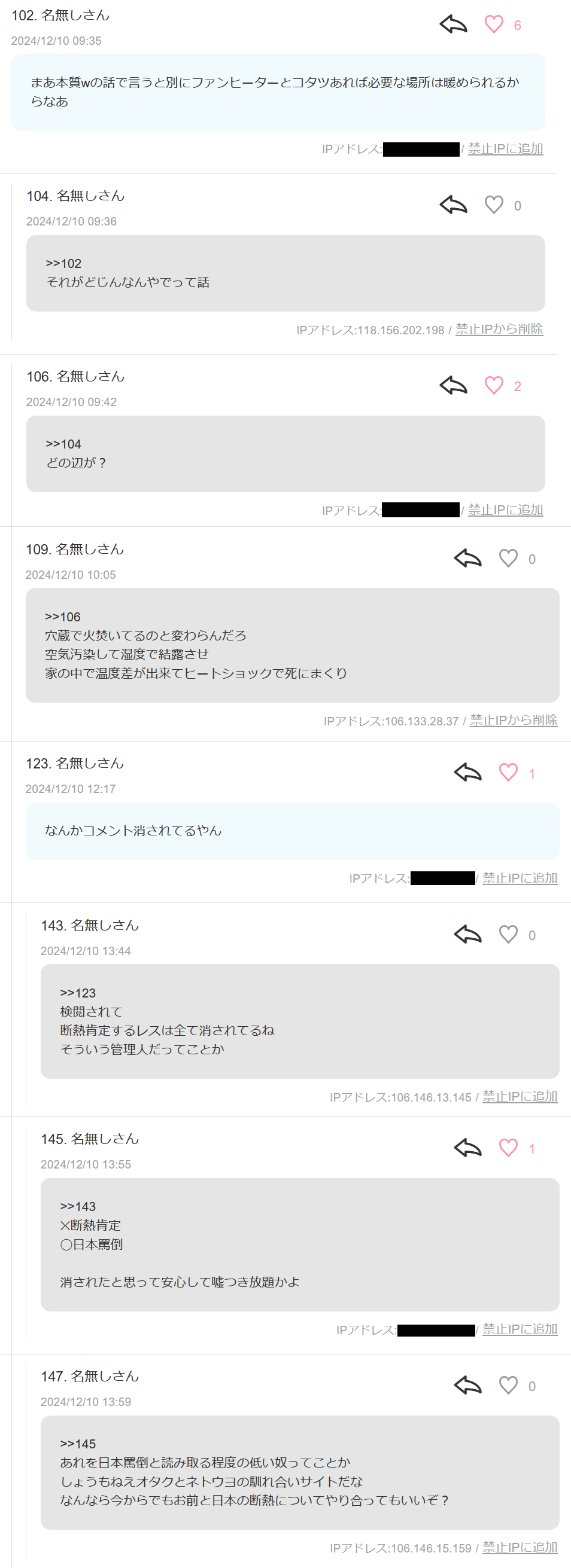 【モナ】『日本の家は断熱ガー!』と47連投の荒らし「日本はどじん。穴蔵で火焚いてるのと変わらん」→削除され「言論統制ガー!」「あれを日本罵倒と読み取る程度の低い奴」と逆ギレ