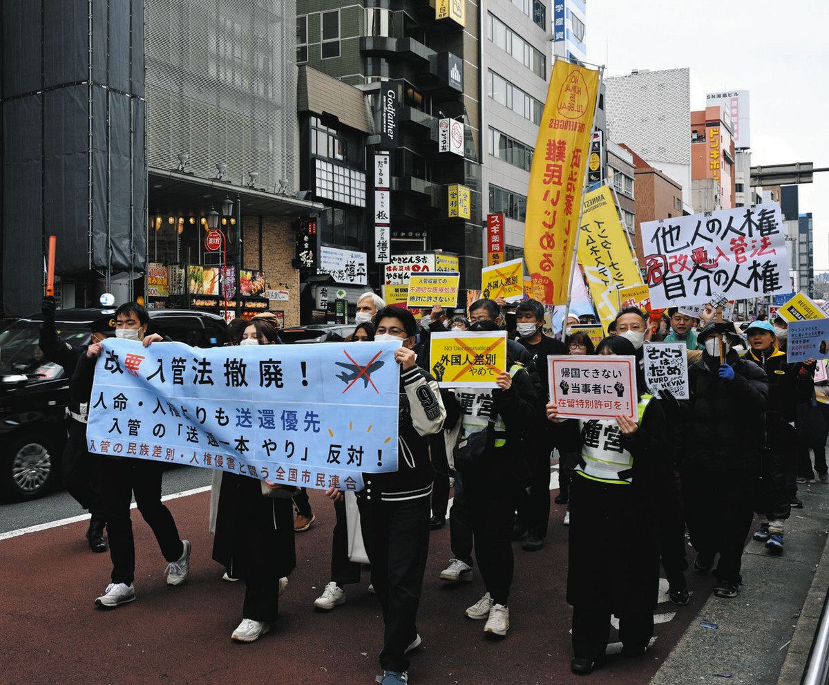 難民や外国人の命、人権を軽視しているとして、昨年6月に全面施行された改定入管難民法(入管法)の廃止を求めるデモが19日、東京・上野のほか、仙台や名古屋、大阪など全国各地で行われた。各地で参加者は「難民を送還するな」「人の命と権利を守れ」と声を上げた。
