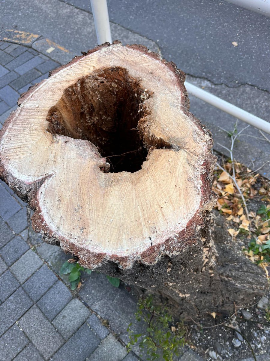 本日、神田警察通りの樹木を伐採しました。途中で反対派が工事を妨害して3本しか斬れませんでした。
