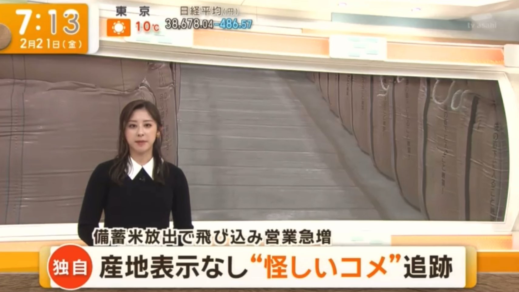 お米不足で値段がつり上がり、政府は備蓄米21万トンを3月半ばにも放出。それに焦った外国人のお米の転売ヤーが、備蓄米放出前にスーパーや小売店に飛び込み営業急増。ところが怪しいお米で、お米の袋に表示が義務付けられている『産地』『品種』『産年』『精米時期』などが全部未記入で違法。