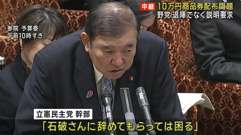 野党は、商品券問題を長引かせ石破政権の体力を奪ったうえで夏の参院選で対決したい考えで、ある立憲幹部は「石破さんに辞めてもらっては困る」と話します。