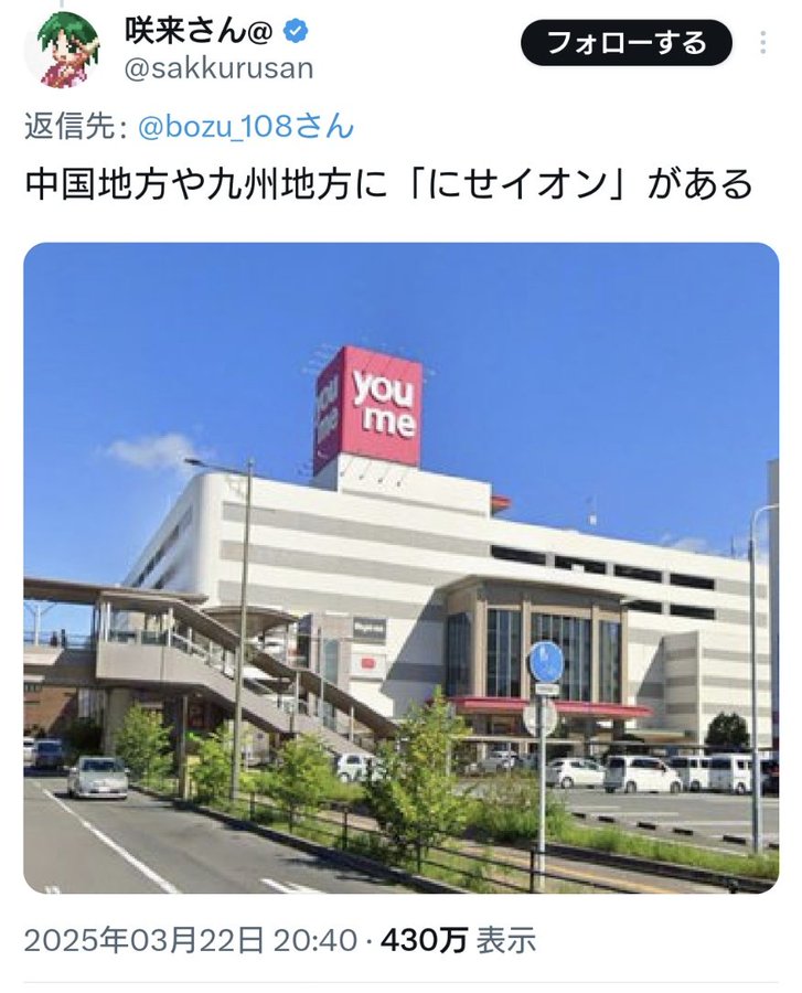 【炎上】北海道民「中国地方や九州地方に『にせイオン』がある」→批判殺到するも自虐ポスト連発してノーダメージアピール
