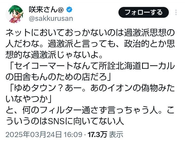 — 咲来さん@ (@sakkurusan) March 24, 2025