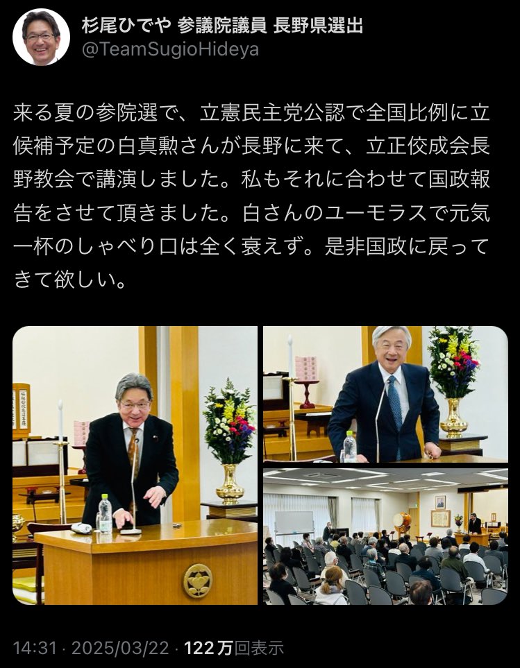 — 杉尾ひでや 参議院議員 長野県選出 (@TeamSugioHideya) March 25, 2025