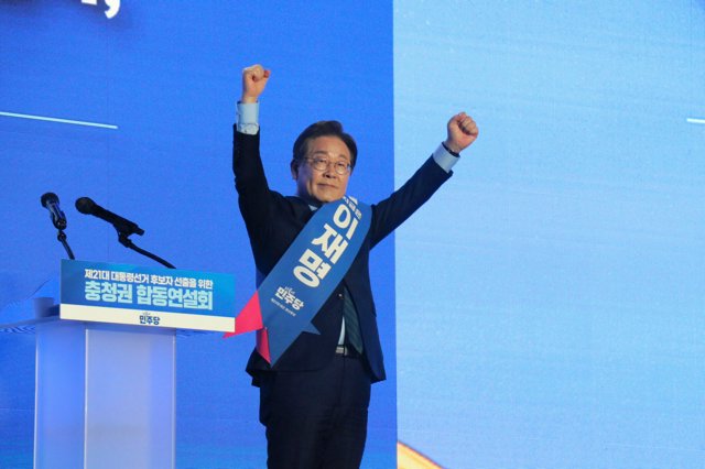 忠清北道清州市でこの日、李氏、党内で「非李在明系」と呼ばれる金東兗(キムドンヨン)京畿道知事、金慶洙(キムギョンス)前慶尚南道知事の3人の候補による合同演説会が行われ、いずれの候補も非常戒厳を出して罷免(ひめん)された尹錫悦(ユンソンニョル)前大統領を批判し、政権交代の必要性を訴えた。