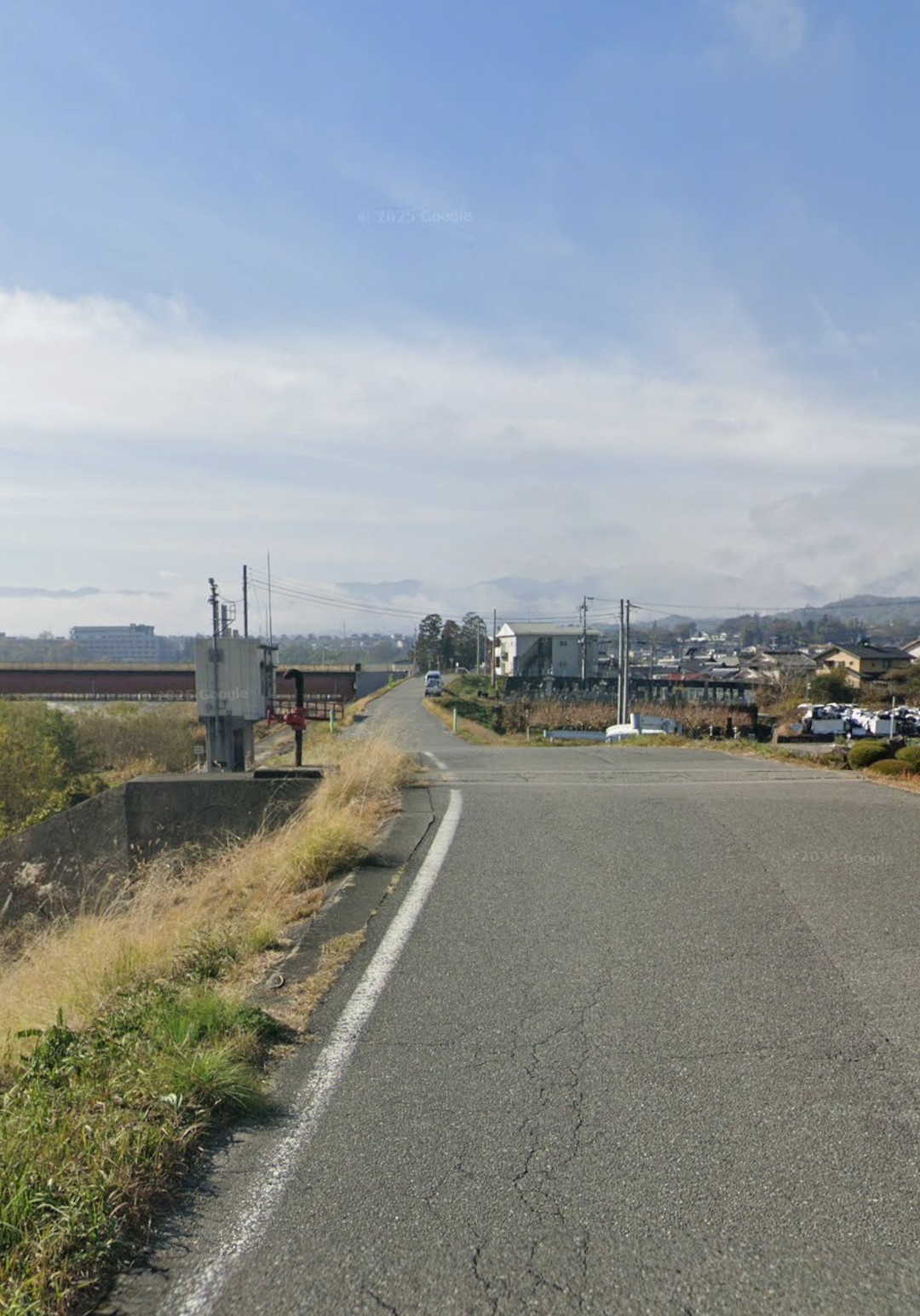 あそこのうねりを超えると二股になっているから真っすぐ行くと土手に突っ込む