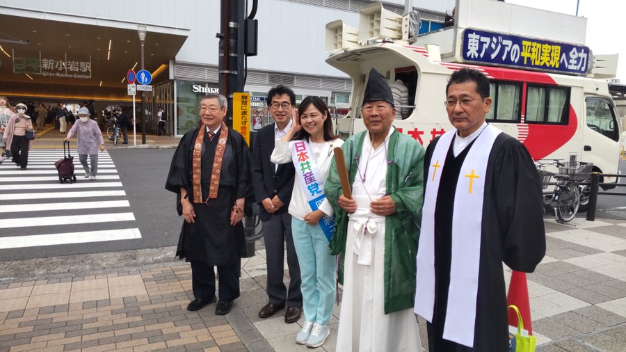 今日は、なんと宗教者の皆さんが、宗派を超えて、日本共産党と私、原純子の応援に、新小岩まで来てくださり、マイクでスピーチ!感無量です。
