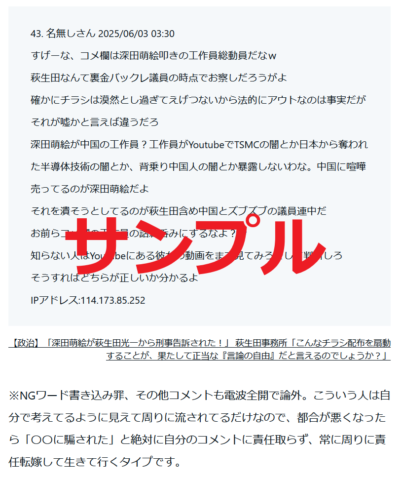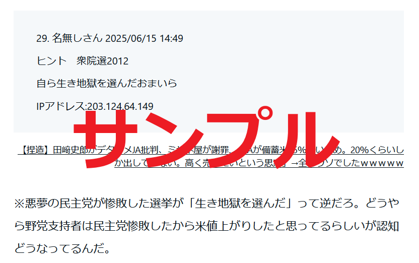 荒らしコメント販売(一部解説):2025年6月分 #ネットジビエ