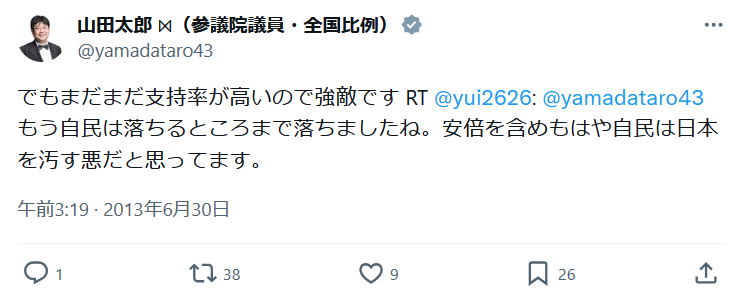 — 山田太郎 ⋈(参議院議員・全国比例) (@yamadataro43) July 8, 2025